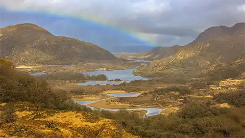 Na de golf zet je de route verder via Moll’s Gap, een bergpas met indrukwekkende vergezichten, gevolgd door Ladies View, een van de meest gefotografeerde uitkijkpunten van Ierland.